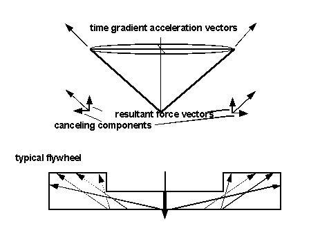 We might have noted an anomalous effect here already, and puzzled over its source, if some tests have inadvertently involved gyro shapes that include non-canceling gradient vectors. A typical shape for a flywheel includes a gradient vector that isn’t canceled by other vector component combinations.